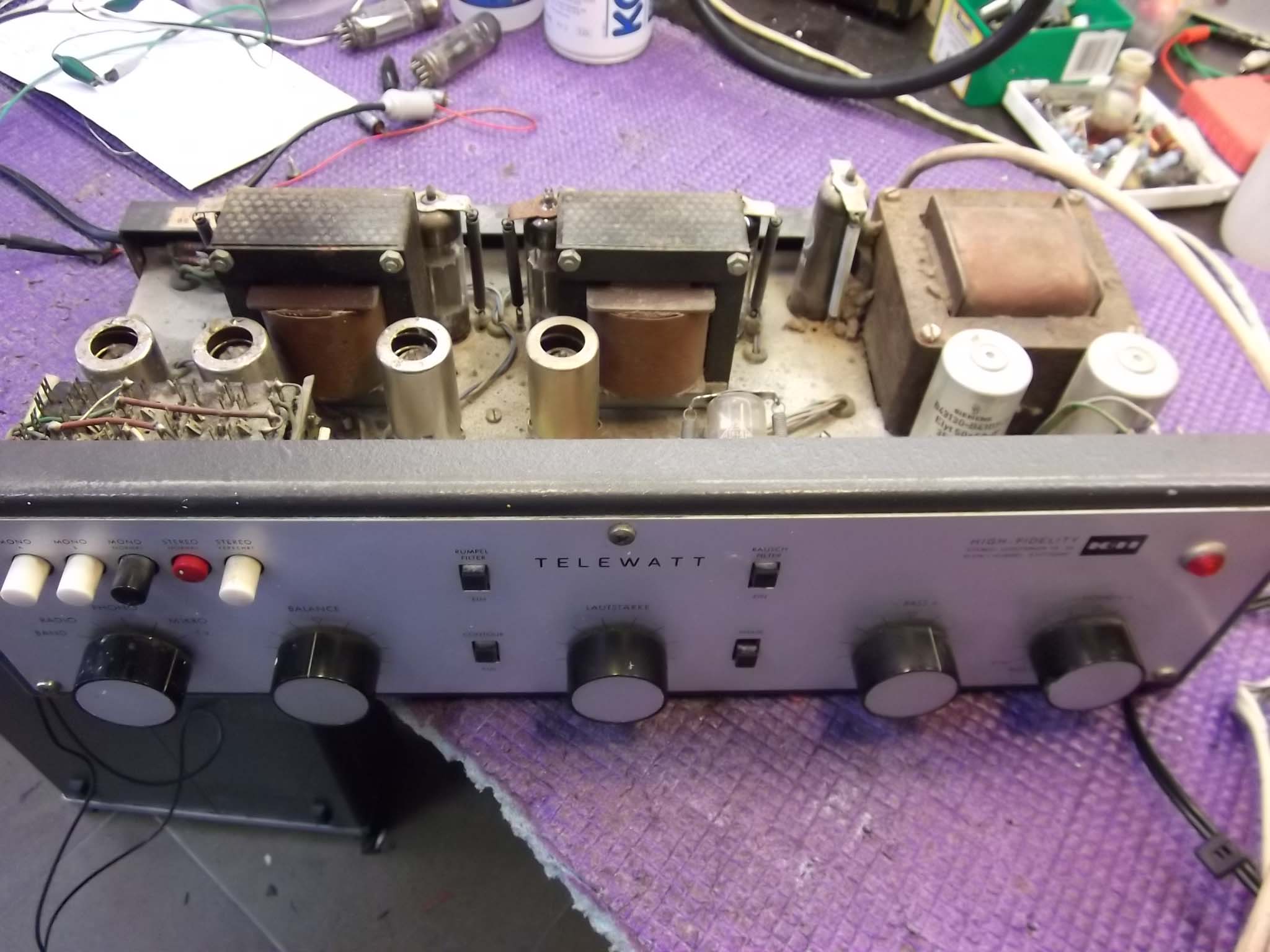 A German couple brought this little amp into the shop for repair. At first I looked at it sideways. Not having seen one before, I started to pluck its feathers away to see what was wrong. Bad joints and the odd resistor high value. But, the capacitors seemed all good. A nice clean up and test the ECL86 output, phase splitters etc, all good. Powered up into a pair of old Warfdales, I was quite warmed to hear the nice sound. The output transformers are much more grown up than the equiv. Armstrongs!!!!